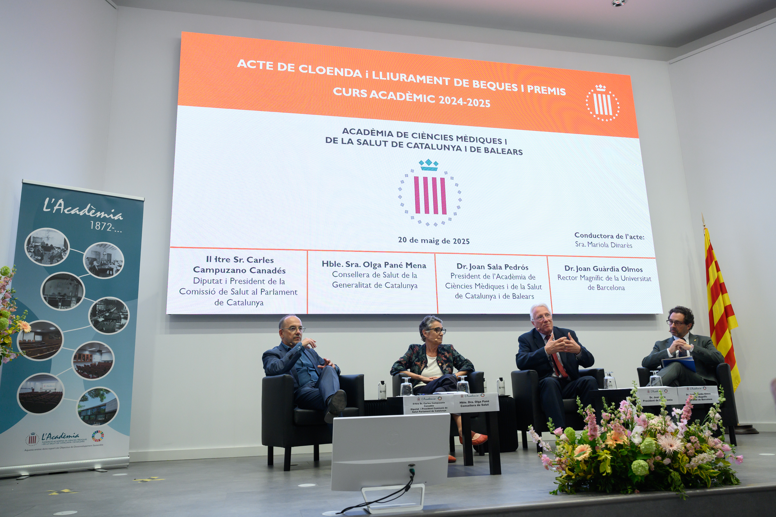 El Dr. Joan Sala Pedrós, President de l'Acadèmia; l'Hble. Sra. Olga Pané Mena, Consellera de Salut; l'Il·ltre. Sr. Carles Campuzano Canadés, Diputat i President de la Comissió de Salut al Parlament de Catalunya; i el Dr. Joan Guàrdia Olmos, Rector Magnífic de la Universitat de Barcelona, van presidir l'Acte