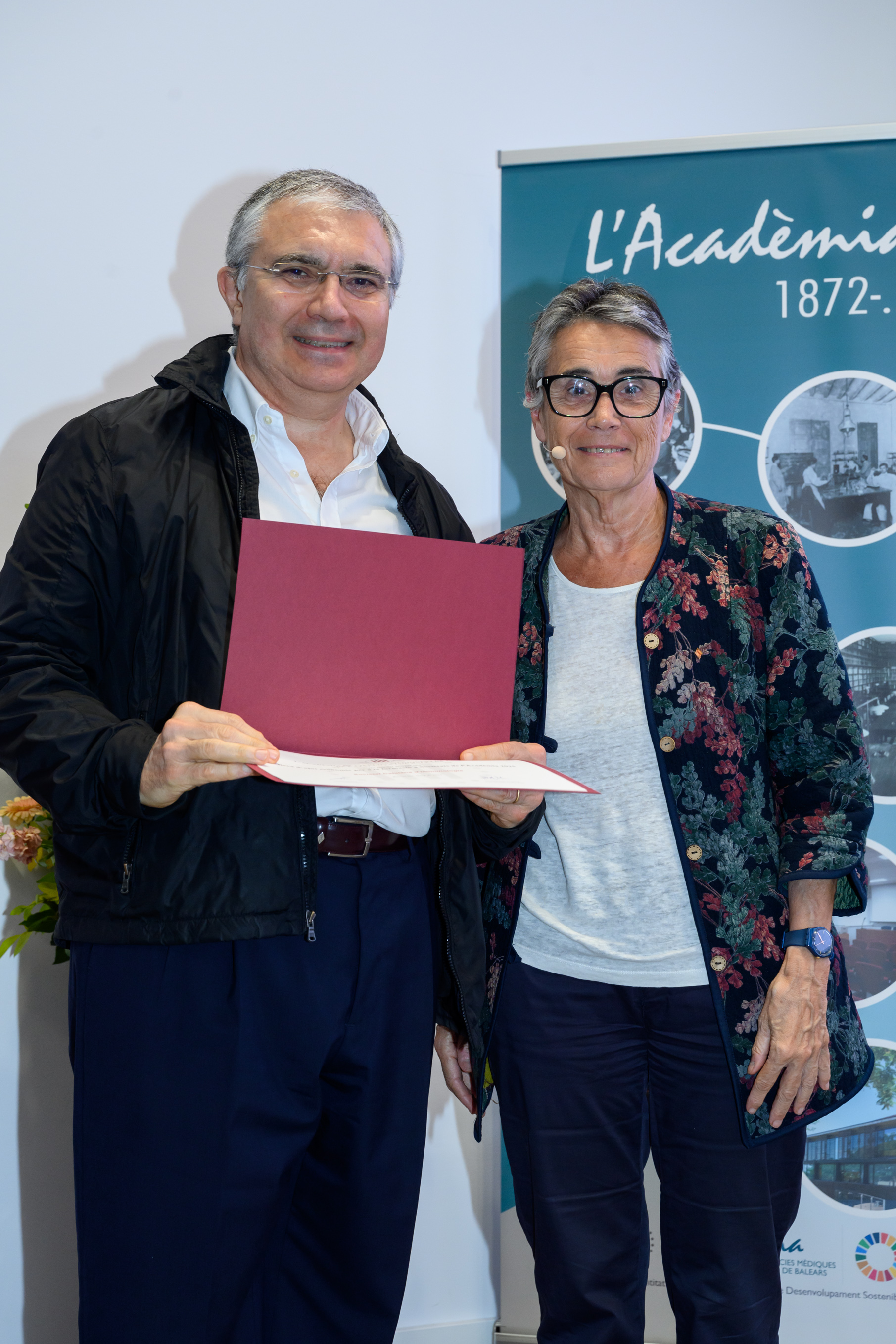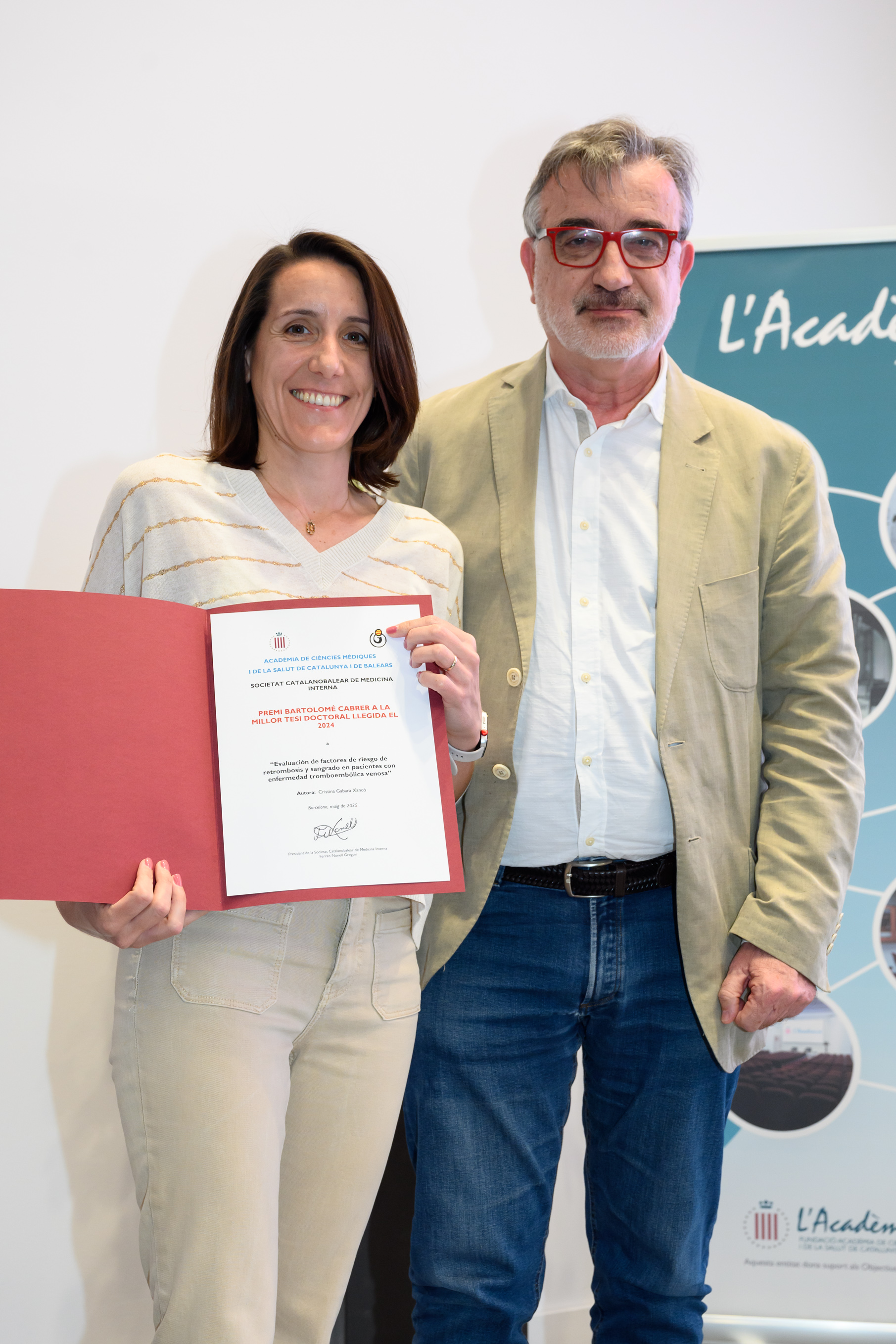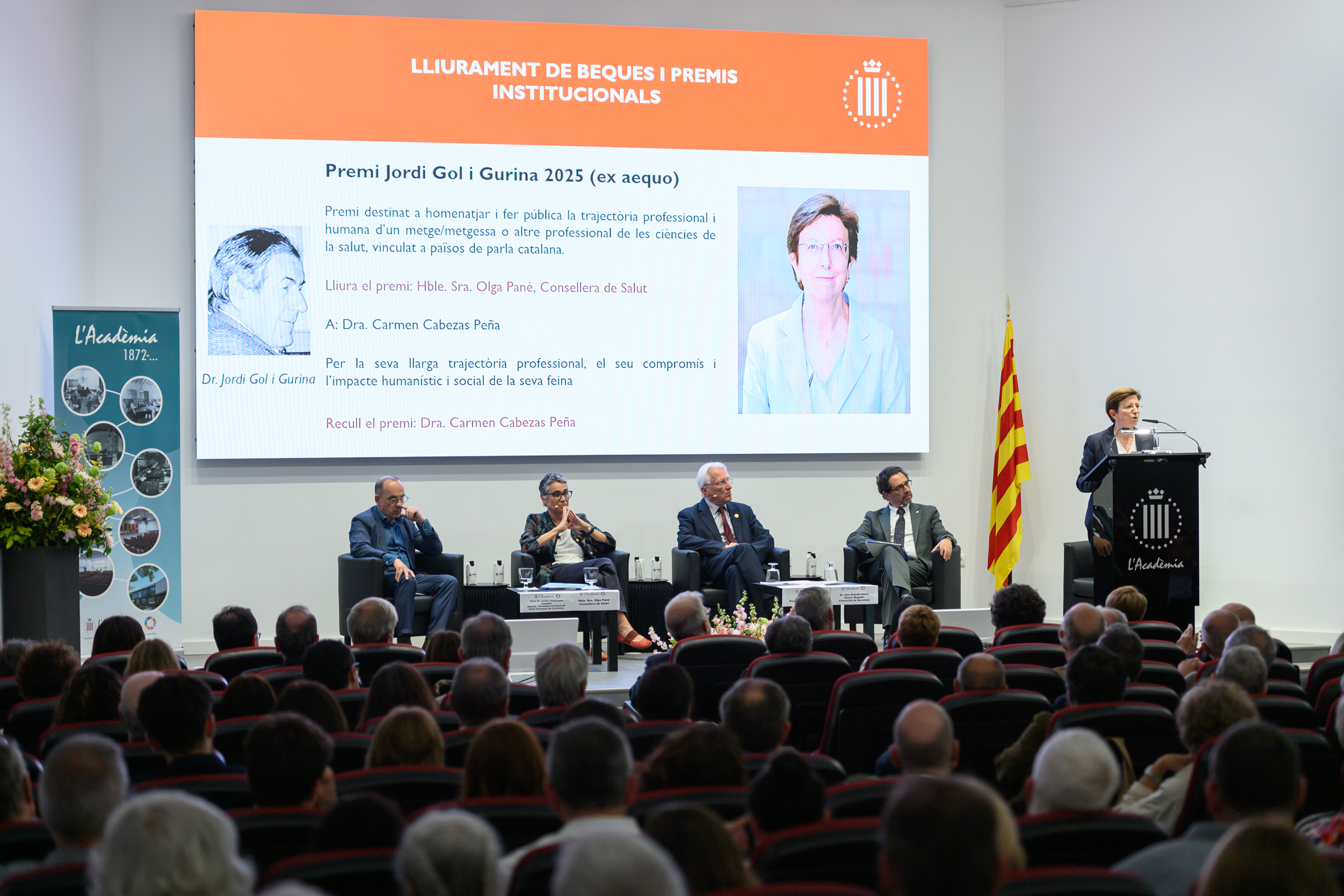 El Dr. Pere Nolasc Acarín Tusell i la Dra. Carmen Cabezas Peña, Premi Jordi Gol i Gurina 2025 (ex aequo), van dirigir unes paraules als assistents i, un agraïment en nom dels guardonats