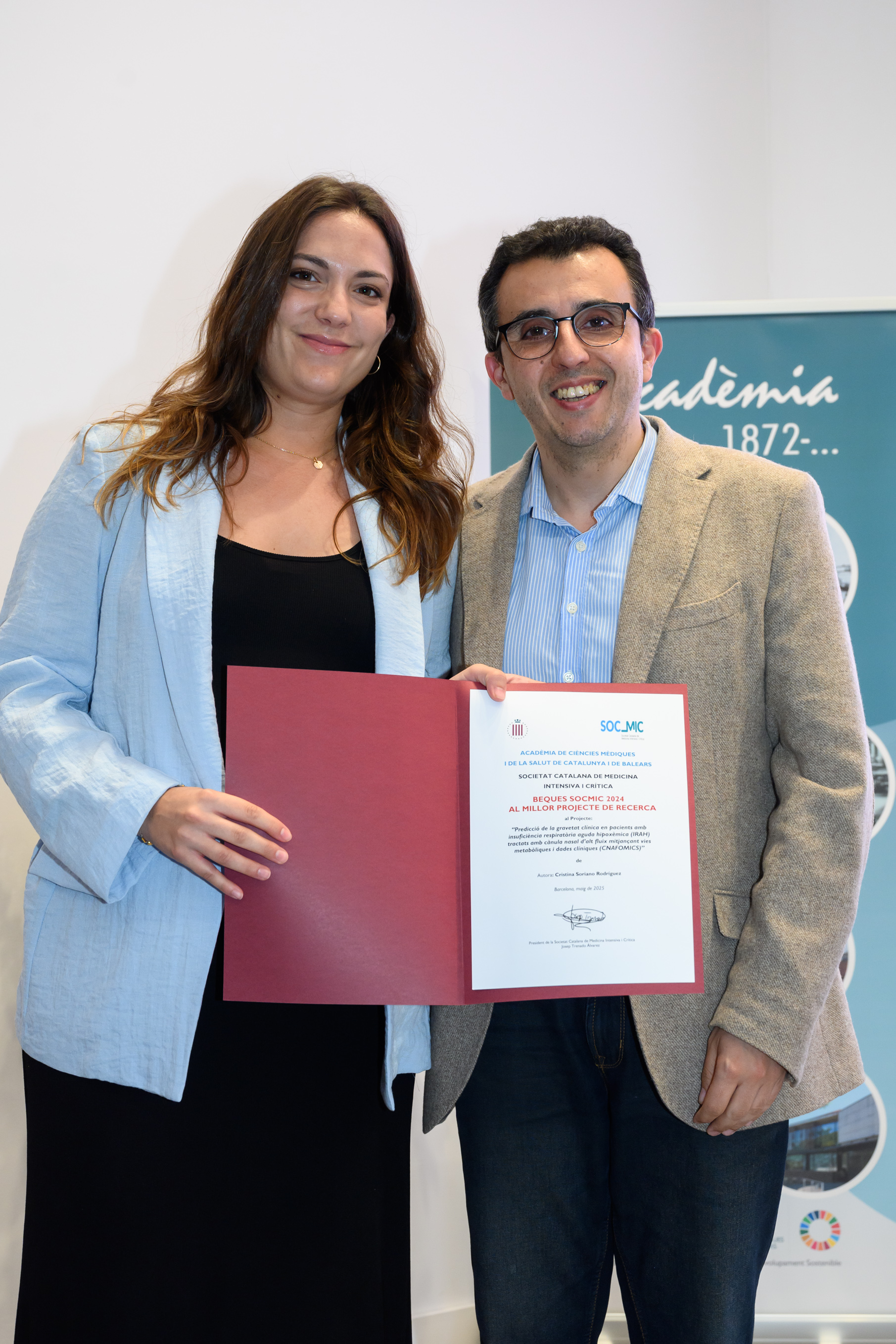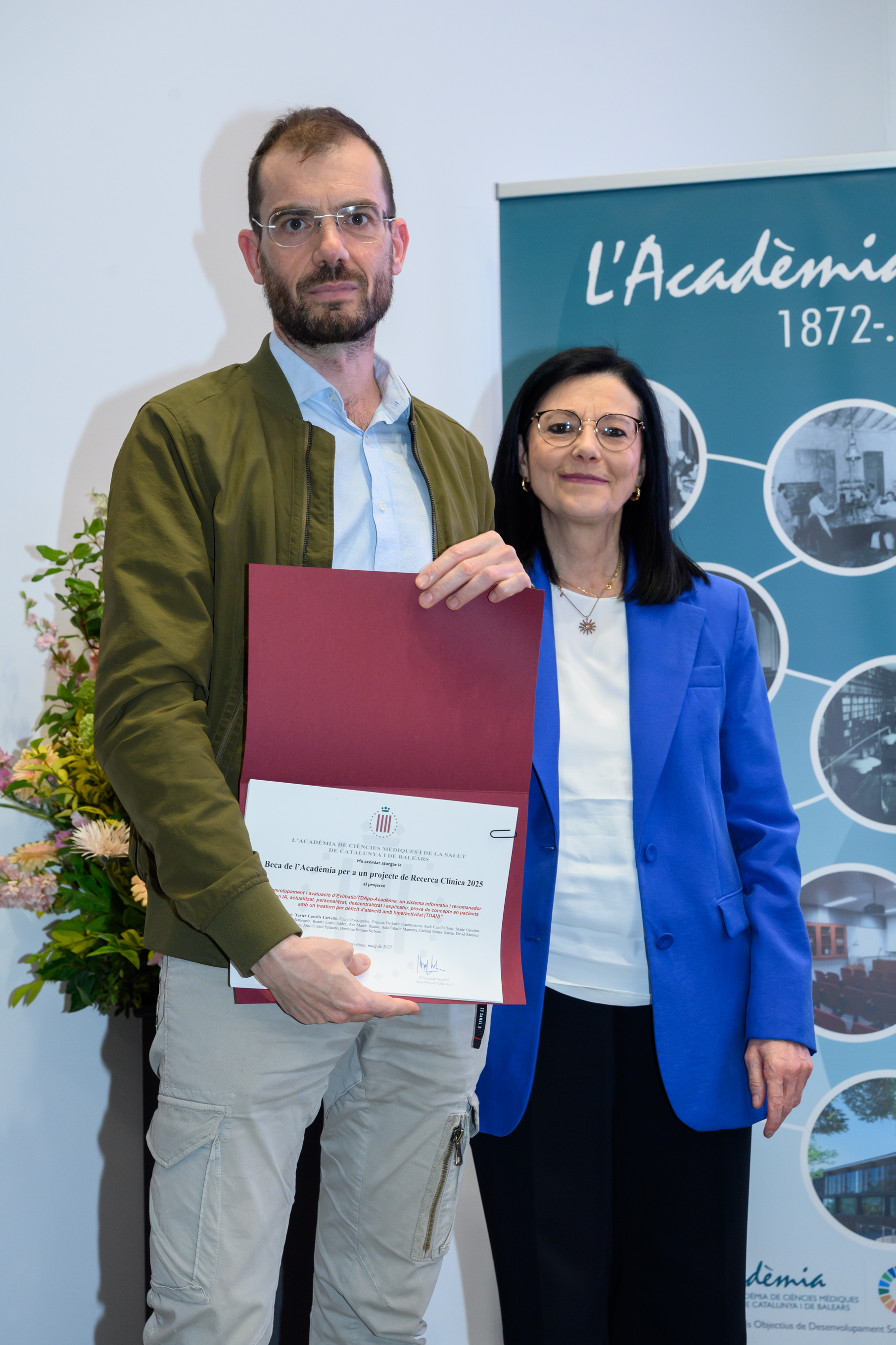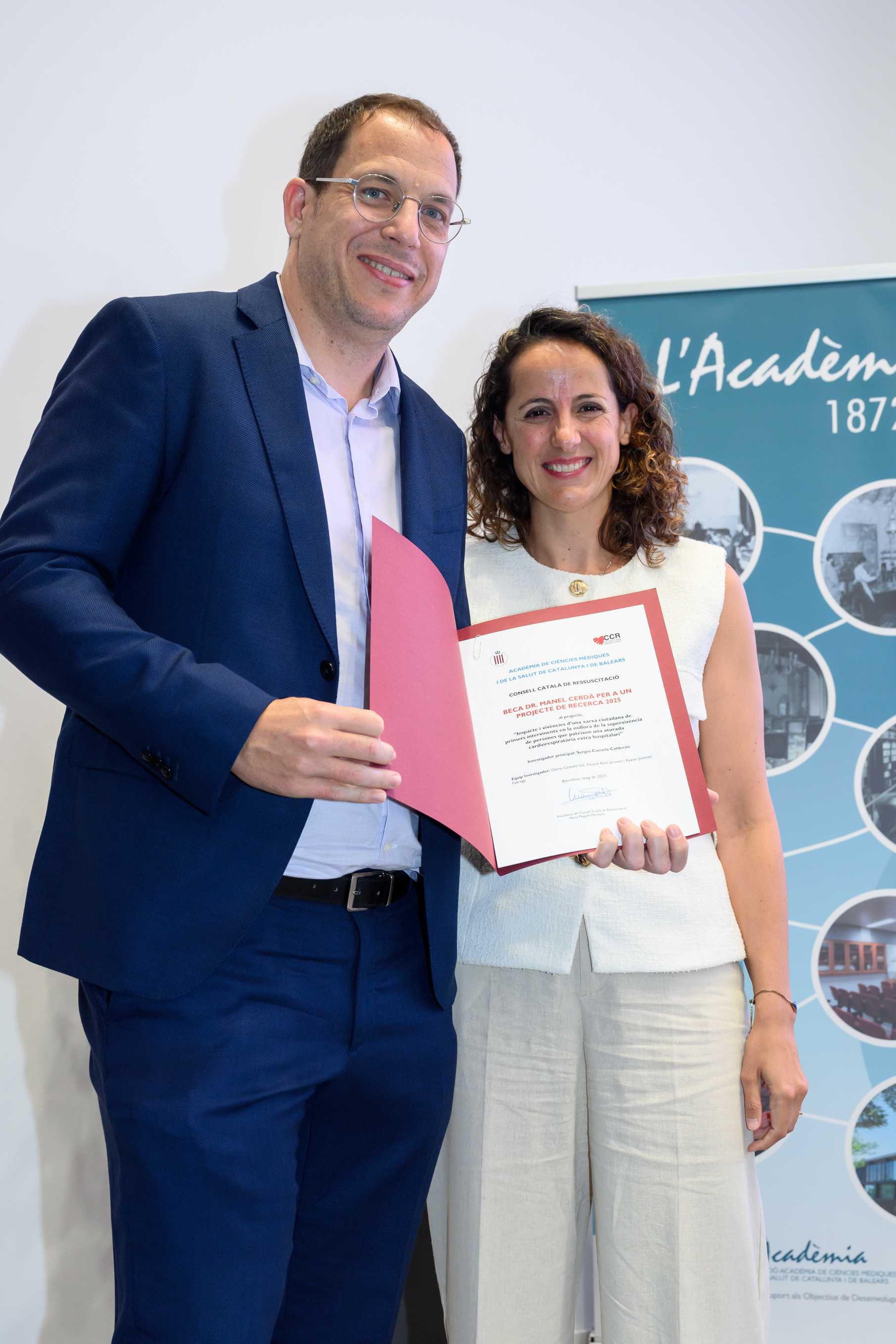 El Dr. Pere Nolasc Acarín Tusell i la Dra. Carmen Cabezas Peña, Premi Jordi Gol i Gurina 2025 (ex aequo), van dirigir unes paraules als assistents i, un agraïment en nom dels guardonats