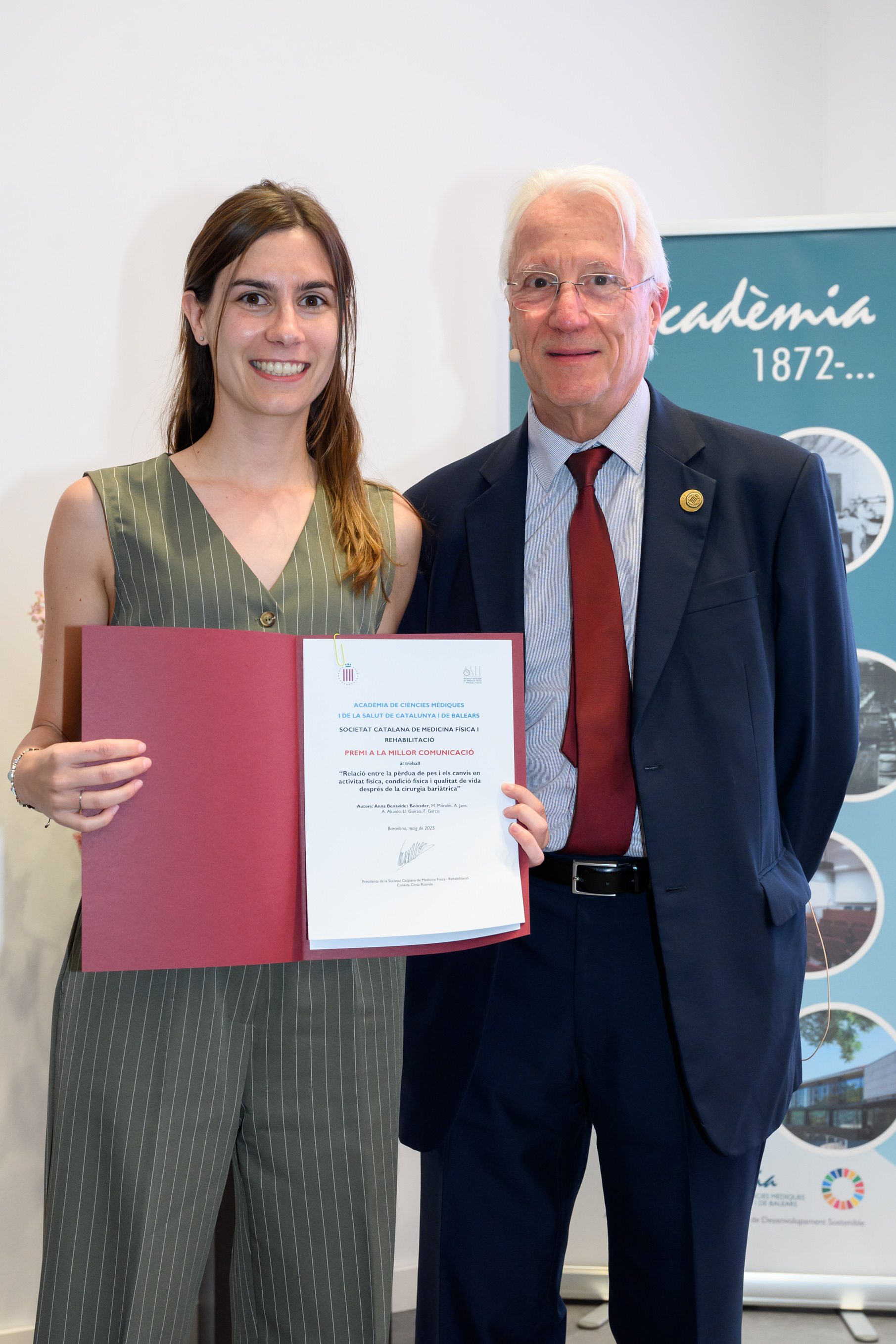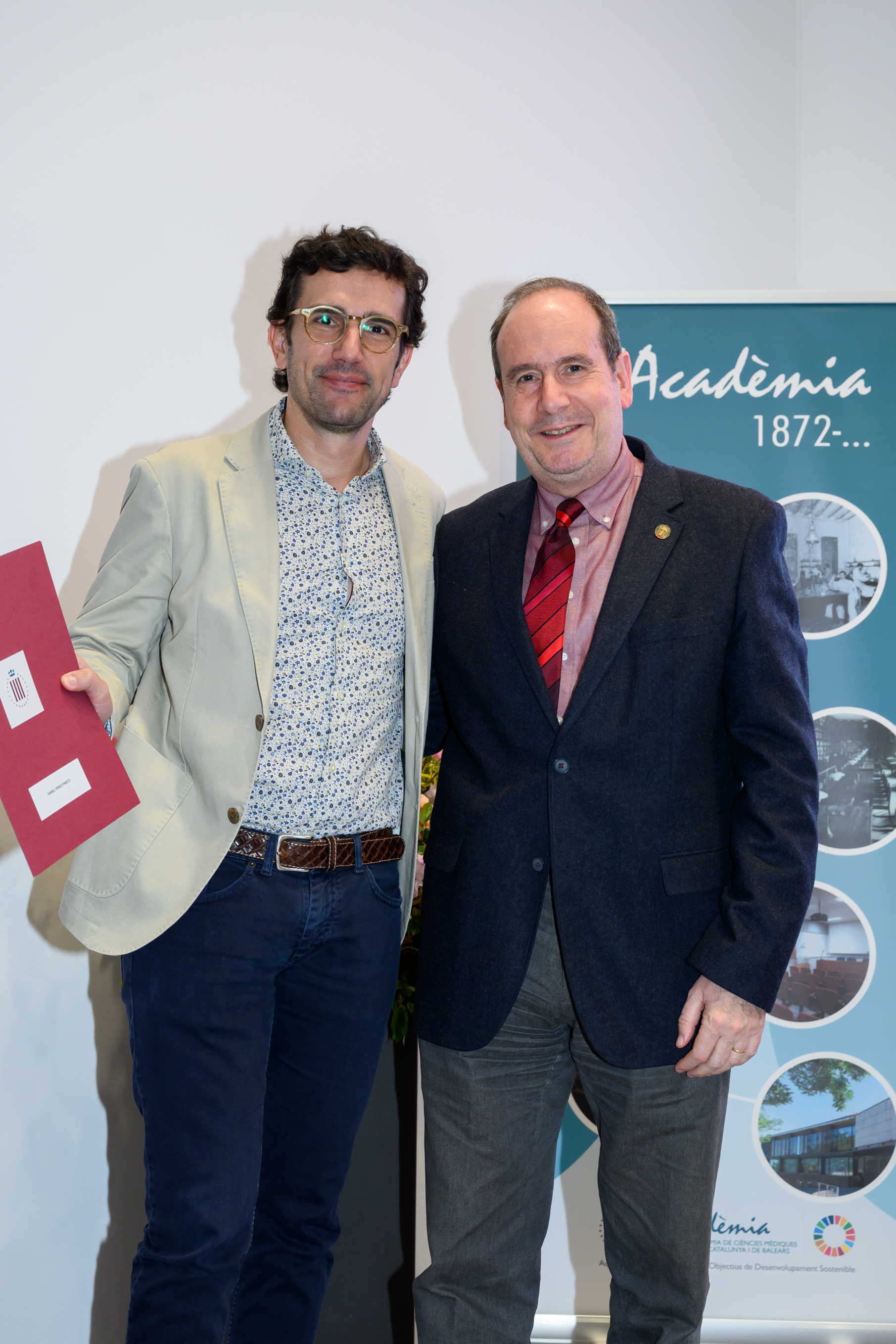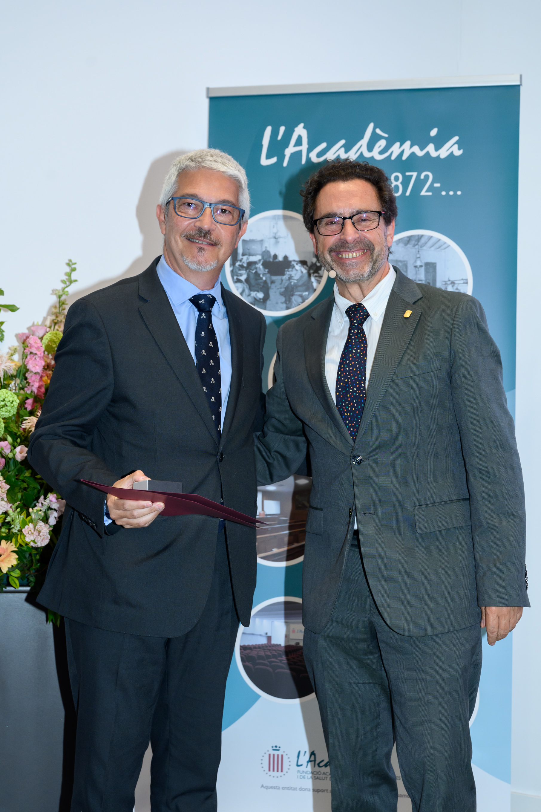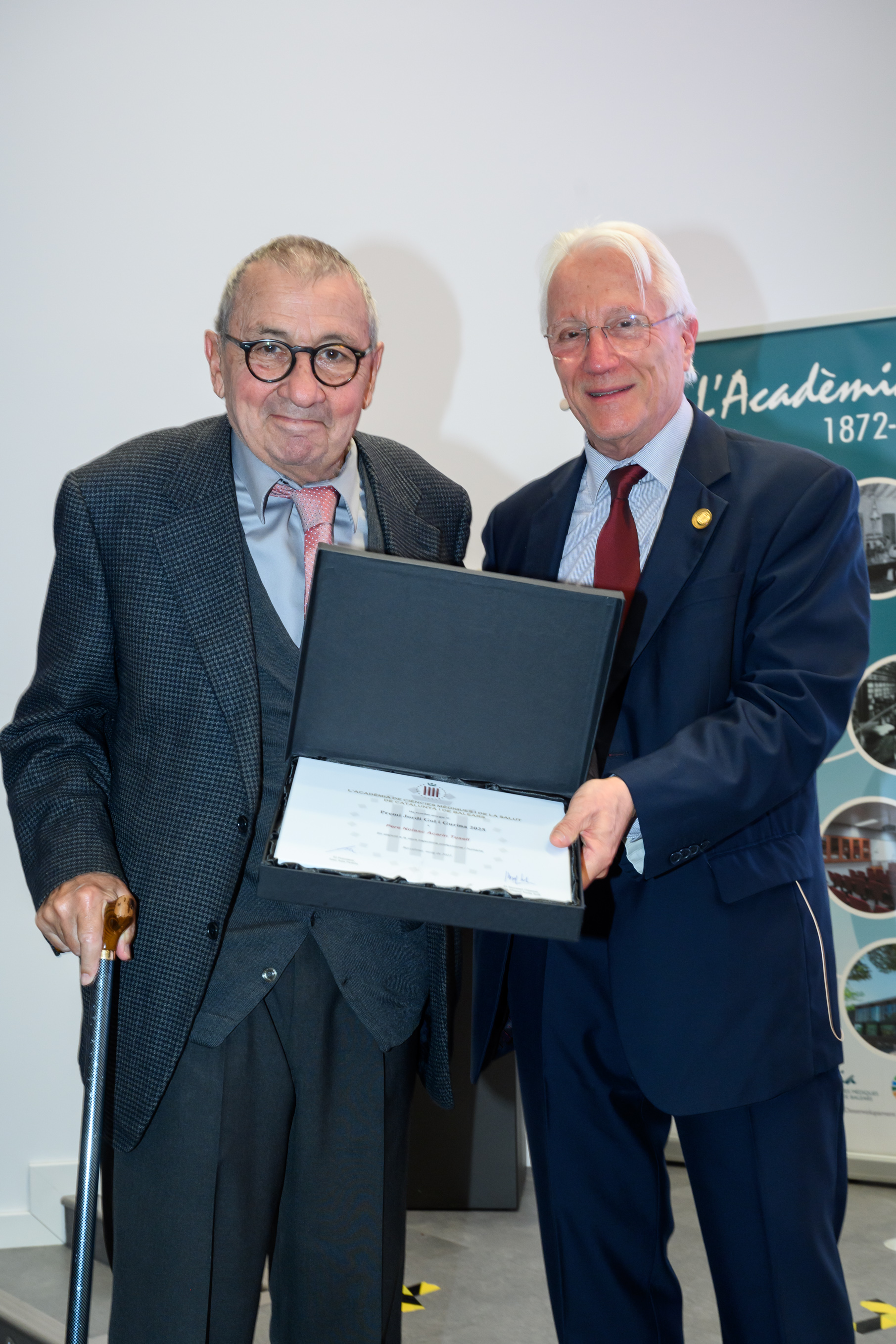 Lliura el Dr. Joan Bartra Tomàs, Vicepresident Tercer de l’Acadèmia i President del Tribunal i, el Dr. Josep M. Llobet Barbany, d’Assistència Sanitària