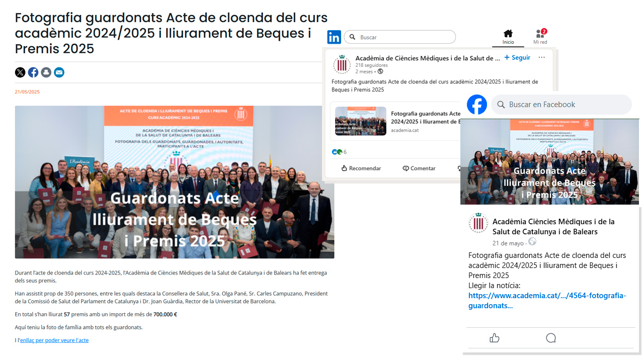 L’Acadèmia publica a xarxes socials automàticament des de les seves notícies